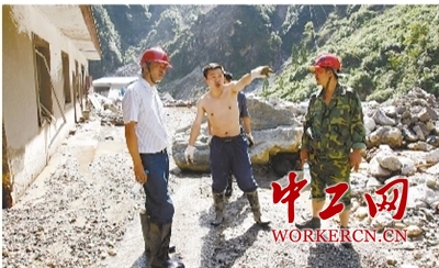 向平带领班子成员徒步上山,亲临一线指挥抗灾自救