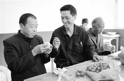 叶德奕(左二)为周宁县李墩镇黄埔敬老院的孤寡老人送去水果。