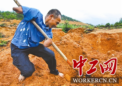 兰林金正在挖坑种油茶树。 郑秋生 摄