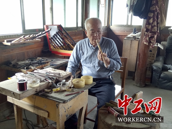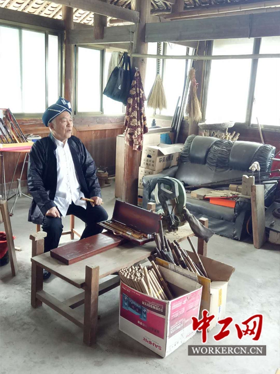 4月24日,广西三江侗族自治县总工会和三江电视台记者的采访组来到区级非物质文化遗产侗族器乐传承人、市级五一劳动奖章获得者胡汉文家做采访。