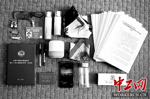 张恒珍委员的行囊。她的行囊里除了平时的调研档案和洗漱用品外,还有一台智能音箱。