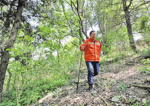 韩明道在林场巡山。1984年,21岁的韩明道加入瓦山林场护林队,成为一名护林员。在一次扑灭森林火灾的行动中,韩明道失去左臂。自1999年起,韩明道成为一名瞭望员,独自驻扎在山顶,一干就是7000多个日夜。(中经视觉)
