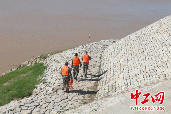 虽然已入秋,李涛还像往常一样,一大早就在黄河堤坝上来回巡查。“现在还在汛期,一天要仔细巡查两次才能放心。”清扫堤顶路面、修整坍塌备防石垛、填垫水沟浪窝、查看水位……9.5公里长的堤防,34段坝岸,巡查一趟下来要花好几个小时的时间,李涛身上的衣服往往被汗水湿透。