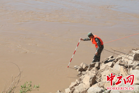 李涛在探摸根石。中工网记者 朱晶晶 摄