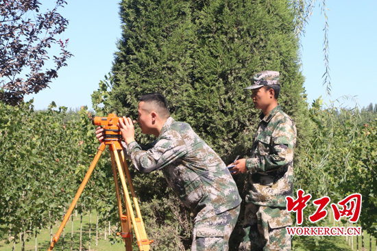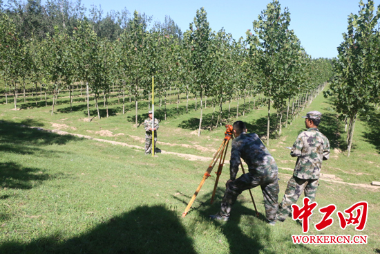 李涛和团队在进行工程测量。中工网记者 朱晶晶 摄