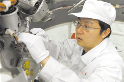 与航天器打了30年交道的王曙群,是该厂对接机构总装班组的组长。在车间里,很多人都知道王曙群有个泛黄的笔记本,那是他24年研制对接机构的心得。