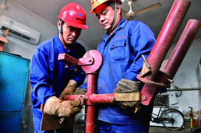 “徐工可是我们车间里的‘老中医’!”在车间里,工友们这样打趣道。在近30年的维修实践过程中,徐玲涛自己总结出一套独特的“望、闻、问、切”技能,一旦公司有机器发生故障,基本能保证“人到病除”。徐玲涛说,所谓“望”就是看表面设备的外表,温度计、油位计,是不是超温、液位低;“闻”就是听听机器有没有异常杂音、异常响动;“问”就是询问工人是否按规程操作;“切”就是用手给机器“号号脉”,摸摸机器运转时有没有异常震动。这样一套“老中医”式的维修技能让他成为企业机修班的“宝贝”。