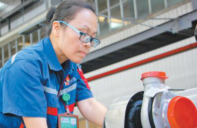 许燕妮是全国五一劳动奖章获得者、广西玉柴机器股份有限公司内燃机装试工种技能大师。“玉柴共有2万名员工,工种技能大师只有十几个,女同志只有我一个。”许燕妮自豪地说。