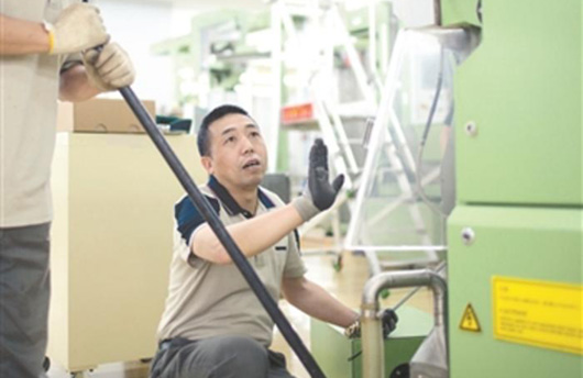 4月30日,在广西玉柴装备模具有限公司内,丘德政双眼紧盯一批新下机的模具,不时手持工具对模具进行修整。今年是丘德政进入玉柴装备公司的第八个年头。8年里,他心无旁骛,苦练技术,终于成为钳工行业的佼佼者。