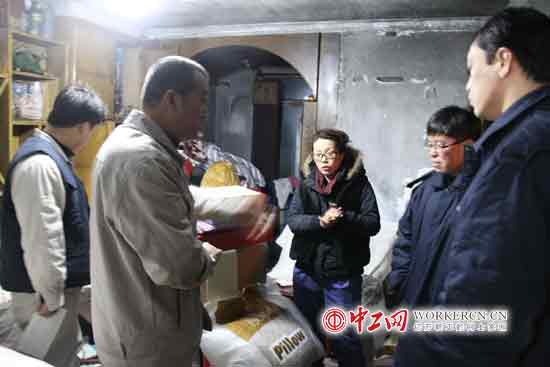 图为走访慰问家中失火的困难职工
