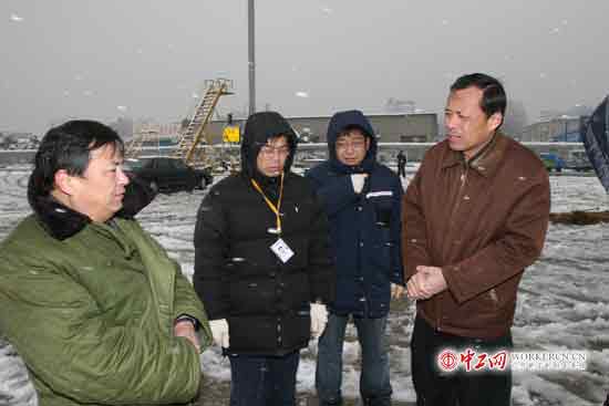崔耕义主席冒严寒看望除冰雪员工