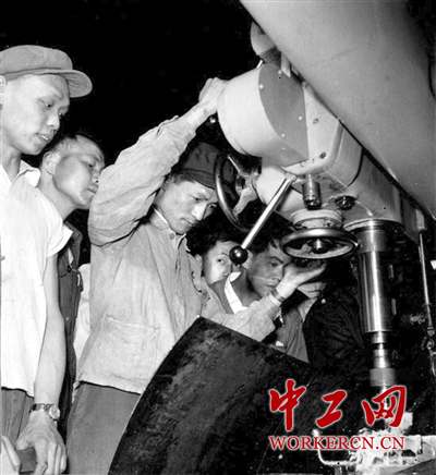 倪志福同志(中)在工作中。 阿宝 一兵 供图