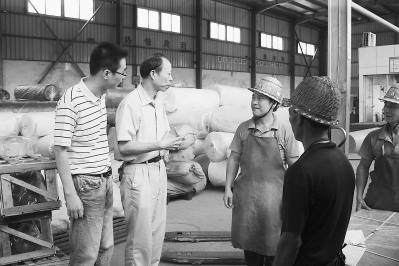 官祖振(左二)带领省总工会挂职干部深入仓储部,倾听一线员工的呼声。