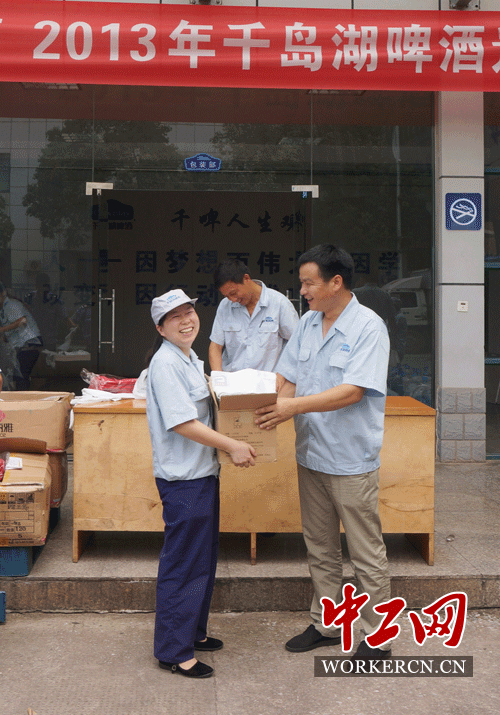 对于千啤公司职工来讲,每年的夏天,总会看到汪拥军顶着火辣辣的日头将每一份清凉慰问品送到一线的身影,这成了千啤酒公司炎炎夏日一道别样的风景。多少个酷暑轮回,汪拥军的足迹踏遍了千岛湖啤酒公司生产区域每一个角落。这些脚步,带去的不仅仅是5625份防暑用品和20.25万元的慰问金,更是工会和企业的关切和牵挂;同样,这些关心,在每一年的春节、端午、中秋等节假日,也通过汪拥军的手,亲自送到每一个员工的手里:合计发放啤酒64500箱,水果、食品等慰问品价值100余万元;超市卡240万元。除了节假日的福利,这里的职工夏天高温补贴也比国家标准要多一个月。另外,员工夜间加班的夜宵也是免费的,每个工人都有午餐补贴。不仅如此,每天下午3点还会有点心送到车间。