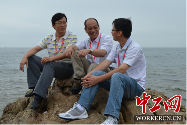 中铁一局电务工程有限公司四公司高级技师窦铁成(中)。中工网记者 秦笑语摄