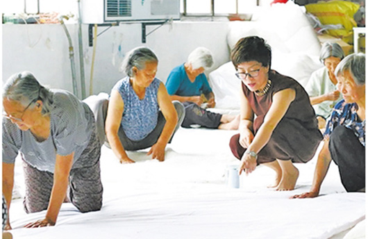 保定唐县水峪口村68岁的刘大娘正蹲在席子上铺棉,虽然她已满头银发,身子骨却很硬朗。每天铺棉被80床左右,年底就能赚1万多元,这样的收入让她很满足。“在这儿干活很自由,也不耽误种地、带孩子、走亲戚,这多亏了金凤这个好闺女,要不是她,我们哪能找到这样的好活儿!”
