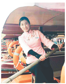 王丽丽是2001年到瘦西湖做船娘的。作为一名“老船娘”,王丽丽的皮肤晒得比别人黑,手上的老茧磨得比别人厚,可她始终以小学生的姿态学习扬州人文历史知识,探究扬州风土人情,不仅熟悉多个版本的导游词,而且加强文艺表演能力,注意掌握扬州人文掌故、街巷名店,自创“三声”服务(来有迎声、问有答声、走有送声)和“服务三字经”(迎客人,笑盈盈;职业装,靓又净……),本人多次荣获服务明星,年年被评为公司先进个人;船娘班还被评为创先争优·争创群众满意窗口服务单位先进基层党组织,并先后被授予“全国三八红旗集体”、“全国巾帼文明岗”和“全国工人先锋号”。