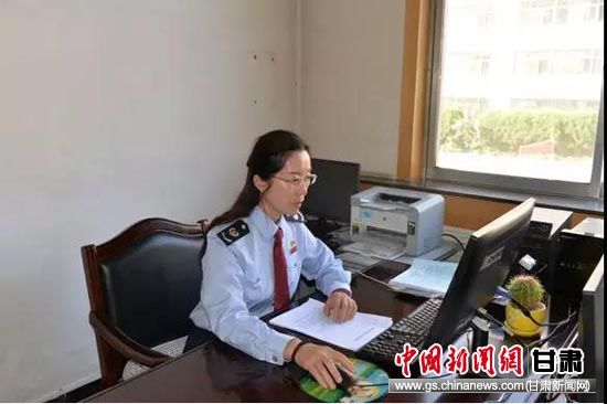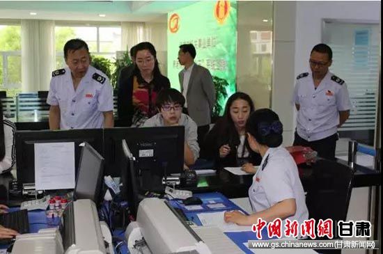 马丽玲在凉州区办税服务厅指导机关事业单位养老保险“金三”上线工作。