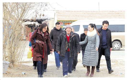 图为春节前,高明芹(左一)和潍坊市总工会干部一起走访困难职工。