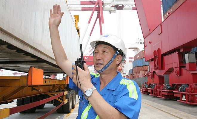 央视网消息:“我站在码头就高兴,甚至有点激动,四十多年了感情在这儿。”今年69岁的许振超,1974年进入青岛港,先后干过装卸工、电工和桥吊司机等岗位,现在是青岛前湾集装箱码头有限公司固机高级经理。他说,桥吊司机的工作是在四五十米的高空,仅凭左、右手控制操纵杆,指挥吊具升降、前进和后退,在“巨无霸”的集装箱里“穿针引线”。