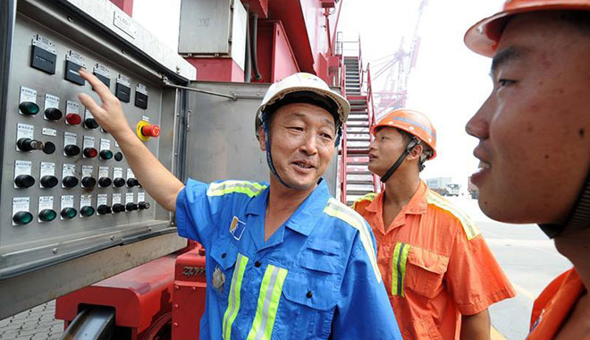青岛港在培养高技能人才方面自有独到之处。坚持“企业是员工再教育的大学校、新平台”的理念,加强思想引领,青岛港从解决“港口发展”和“人的发展”问题入手,通过全员大培训、技术大比武、在线学堂等平台资源,进一步调动起广大员工自觉学业务、主动练技能的积极性。结合开展“党员示范岗”、“工人先锋号”等竞赛活动,激励全港员工立足岗位、创先争优,并拓宽员工职业发展通道,让员工与港口共同成长。继许振超后,又培养出了党的十八大、十九大代表皮进军,全国优秀共产党员郭凯,涌现出了“全国五一劳动奖章”获得者王加全,国务院政府特殊津贴获得者唐卫等一大批“振超”式德才兼备的先进典型。