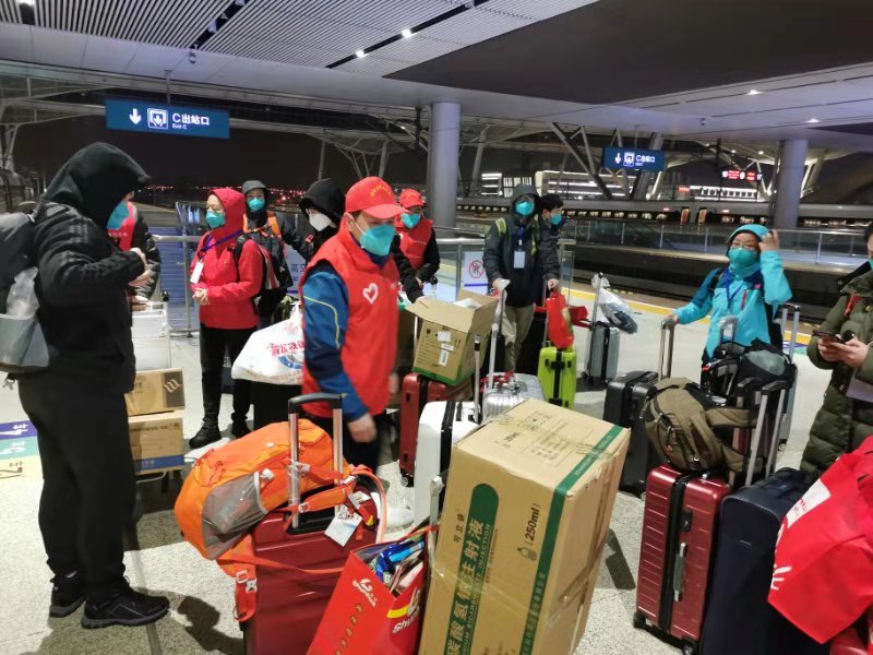 图为医疗队在火车站集结出发