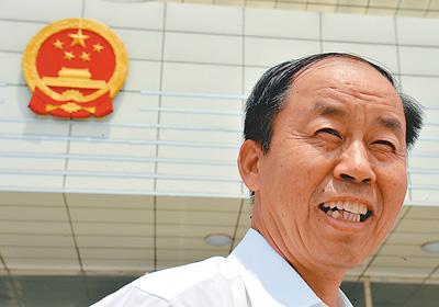 吕振华在办公楼前(8月13日摄)。 苑立伟摄(新华社发)