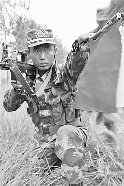 “上!”指挥员一声令下,虎背熊腰的侦察连连长郑星忠快步疾奔,直抵楼前,紧抓避雷针攀缘而上,仅用8秒便飞身登上楼顶。