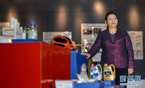 杨芳在中南大学内的大学生创业中心展览厅留影(11月27日摄)。 新华社记者白禹摄