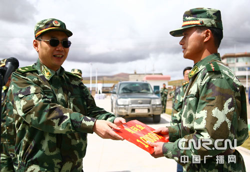 2008年9月13日,武警西藏总队总队长郭毅力深入武警那曲支队无人区守护中队看望慰问官兵,并送去慰问金。(摄影:钱檬)