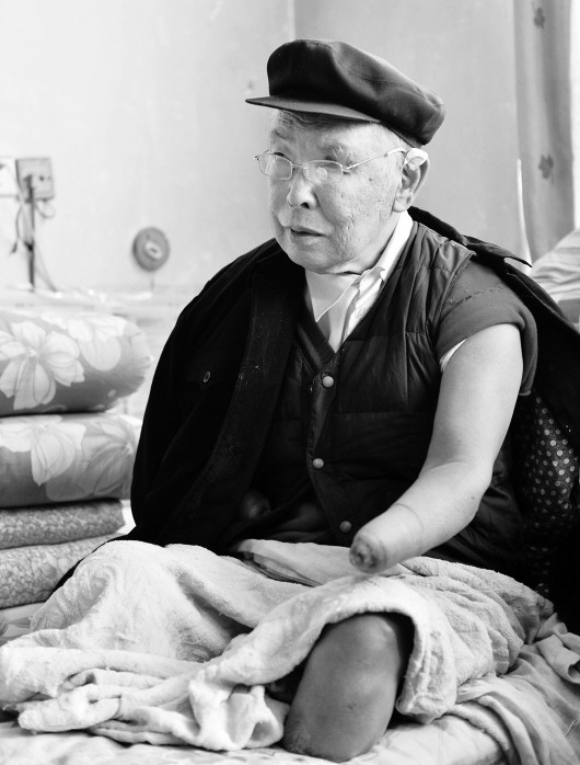 但朱彦夫并未很沮丧,他略带得意地告诉我们,他有4种走法:站着走,跪着走,爬着走,滚着走。