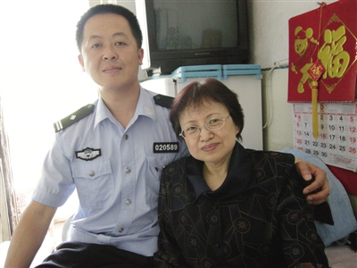 床头上的照片和刘瑞华老人唠嗑,我细细地听着,不时环视着老人居住的地方,在不到六平方米的地方,她的床就放在橱柜旁边,中间不足20厘米的过道,每一样东西都干干净净,摆放得整整齐齐,尤其是摆在床头柜上的照片,更是深深地吸引了我。照片的背景就在这间小屋里,马东辉穿着警服和老人并排坐在床上,左手轻抚老人的肩膀,老人微笑着,头靠在马东辉的肩膀上——至爱亲情也莫过如此。老人说:“马东辉对我那是真心、真情、真爱,他所做的每一件事情都不求回报,让我时时刻刻感觉到温暖,他把我的手机‘SOS’键设定为他的号码,告诉我一有紧急的事情马上给他打电话。这部电话,一端系着我的命,一边连着马东辉的心啊!”