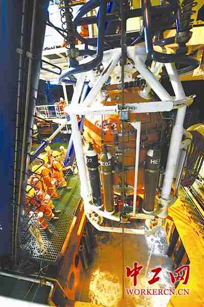 此时,金锋盯着监视器,心中紧张天气情况可能带来的不测,但又胸有成竹。他坚信队友们一定会完成任务,“等待300米深潜技术实践已经有两年,潜水队员身后是一个成熟的团队,几十年的技术沉淀。”
