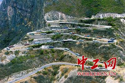 行驶在卢班戈盘山公路上的中特物流车队。(本报资料照片)
