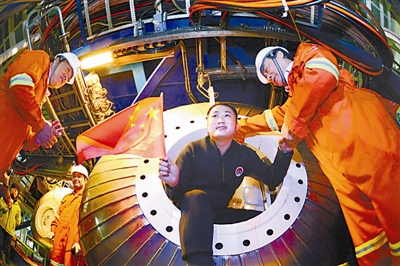 从103.5米成功下探到313.5米,中国氦氧饱和潜水能力大大拉近了和世界先进水平的差距。 郭一江 摄
