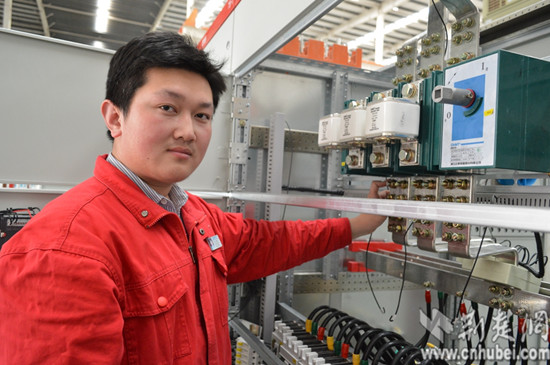 正是这种踏实、静心的工作状态使得张健在装配工的岗位上一干就是两年。“我首先做的是一次线装配工,将高低压变电柜内的大型元器件装进去,之后做的是二次线装配工,用一根根粗细不等的铜线将各元器件连接起来。”