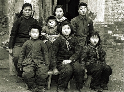 后排自左至右是焦裕禄的大女儿焦守凤、小儿子焦保钢、妻子徐俊雅、儿子焦国庆,前排自左至右是儿子焦跃进、女儿焦守云、女儿焦守军。资料图片