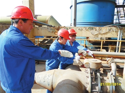 5月下旬的一天,太阳高悬在秦岭上空,室外温度30度。刚刚召集职工开完班前会的硫酸工段段长王世文,带领两名青工开始了一天的工作。