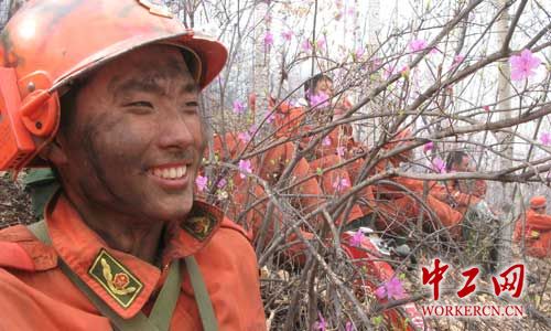 回首2006年仲夏,北部原始林区伊木河发生森林火灾,直接威胁到原始樟子松林和边防连队油库安全,情势万分危急!时任中队指导员吴迪带领党员“突击队”,冒着被倒木砸伤的危险,在火头必经之地开挖防火隔离带,预阻火线的蔓延。他们力舞砍刀在厚厚腐殖质层上打开缺口,砍刀崩出了豁口、战士虎口震裂、荆棘把裤脚划开刺入肉里……勇士们挥刀拼搏,义无反顾。极度的劳累和高温让战士们晕倒了,浇壶水淋醒了再上;火把鞋底烤化了,塞进一把草穿上再上;风力灭火机油料耗干了,拿起身边的树条再上……10个多小时的奋战,火头顶住了,油库保住了,森林安然了。看吧,大战之后的战士满脸油烟、嘴里叼着干粮,倚着树干睡着了……在场的兄弟部队领导为官兵们的神勇和悲壮所震撼!北京军区专门致电总参谋部为奇乾森警中队请授集体二等功。林海尖兵的战旗,化作了大兴安岭顶最荣光的壮景!