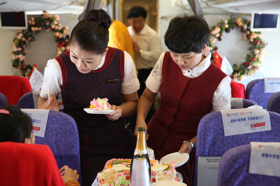 在国航,有一个不成文的惯例,每条新开国际航线,金凤组都会首先执飞,在服务中总结航线特点,帮助制定更加适合该航线的服务计划。普通舱餐饮同步配送、高舱位旅客姓氏服务、飞机起降环节广播致谢……许多服务标准,也是金凤组以类似的方式从实际工作中总结提炼出来,最终确立为客舱中的服务标准。另外,金凤组还根据旅客的需求,在产品设计上进行了一系列的创新,阳光咖啡屋、空中酒廊,甚至全聚德烤鸭都相继走入机舱,丰富了旅客的空中旅途生活。2008年,他们率先提出了主题航班的概念,每逢重要的节日来临、新的航线开通,结合当班的主题,设计独特的活动,春节航班上与小朋友共编中国结,北京—维也纳首航开展文化之旅唱响中国之音……如今,主题航班概念已经在中国民航业成为新风尚。金凤组行业标准代言人和潮流引领者的形象,是一点一滴的努力汇聚出来的,是用服务中更多的思考与钻研换来的。金凤组资深乘务长杨金荣经常用一句“我是走到美国的!”与朋友们开玩笑,但其实,这并不是个玩笑:“在常人眼里,我们是飞到美国的,可我们真是走过去的。年轻的时候,我还会在换班的时候休息一下,等我成为一名带班乘务长,基本一路都不去睡觉。我要用缓慢移动的脚步和搜寻的目光,去发现需要帮助的旅客。虽然这个过程是两点一线,但在这个过程中,我真的是用我的脚量过去的,用我的眼睛看过来的,用我的嘴说完的,用我的手来做完的。”