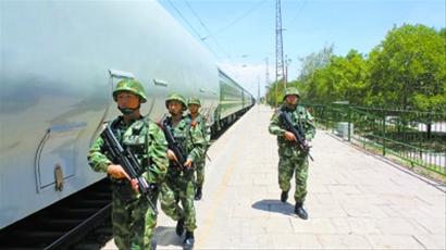 在列车行进过程中,临时停车是常事,这时最容易出现意外。“拾荒者经常搞 ‘突袭’,偷偷往火车上爬,让我们猝不及防。”排长燕华告诉记者,一次执行任务时,半夜有人在外面猛砸车厢,官兵们马上在车厢里将子弹装上膛,做好随时处置突发事件的准备。