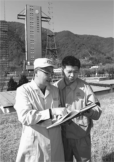 车著明(左)在讲解火箭测试过程。周 震摄(新华社发)