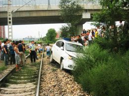7日18时许,太原市交警支队万柏林一大队接122指挥中心通报:在西中环太原科技大学铁道附近,有一白色现代越野车由于制动失灵,冲破铁道护网,掉入5米深的铁道道轨沟槽,汽车轮胎卡在道轨上无法离开。接警后,交警四中队中队长刘云彪带领民警梁永发火速赶赴现场。现场,白色越野车卡在道轨上,围观群众很多,司机已不知所措。而这条铁路线正好是西山晋煤外运的主干线,每天来往火车频繁,道口无人看守,一旦此时有火车通过后果非常严重。