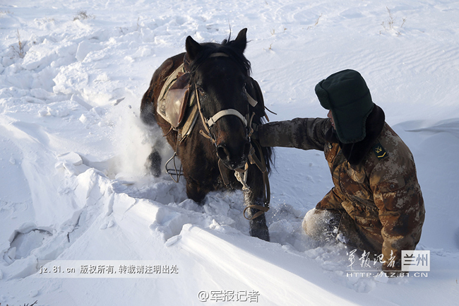 近日,新疆军区某边防连组织巡逻分队上冒着零下35度的低温,骑马对管控区域实施了执勤巡逻任务。有的边境地区已被大雪覆盖,寒风吹在脸上像刀割一般。雪最厚的地方贴上的战马的肚皮。辛苦啦!边防的子弟兵!