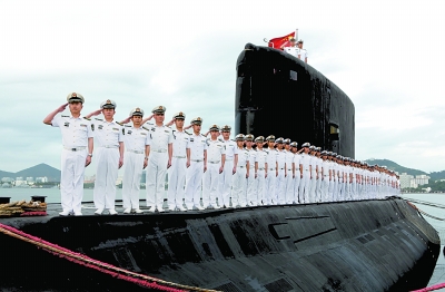 372潜艇官兵立于潜艇之上庄严敬礼。本报通讯员 高毅摄