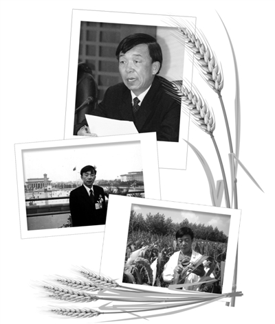 由上至下:吴坚为普及丰禾10号作讲座。全国劳动模范吴坚参加国庆观礼。吴坚观察玉米在抽穗期的变化。 资料照片