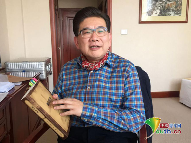 曹可凡在展示他的新书《蠡园惊梦》。中国青年网记者郭蕾 摄