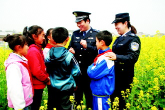 “警察爸爸”、“警察妈妈”和孩子们在一起。张斌 摄