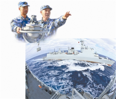 驰骋中的军舰,日夜兼程,切过黛绿,切过靛绿,切过普蓝湛蓝蔚蓝,切入一片宝石蓝的洋面。东海,这旷古浩瀚、充满梦幻般的神秘而又富有魅力的海域,在它那诡谲多姿的海面上,又会刻下一个新成员一道怎样的航迹?