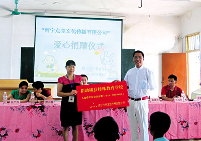 2012年全国助残日,黄友捐助横县特殊教育学院仪式。